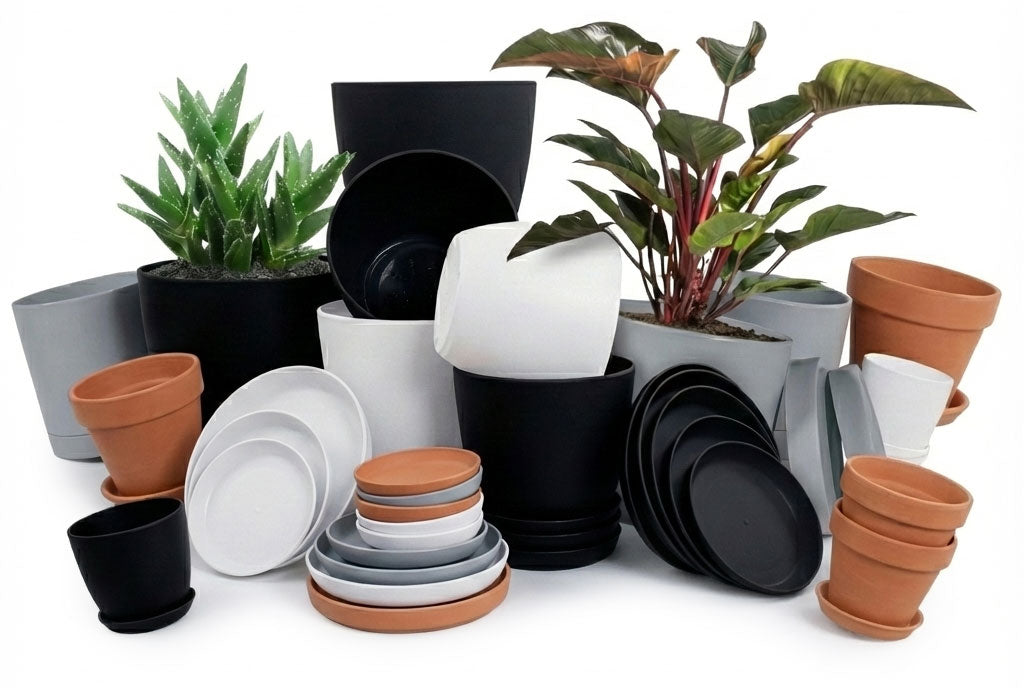 5pcs Modern Plastic Flower Pot Set with Drainage Holes and Trays for Indoor/Outdoor Plants.