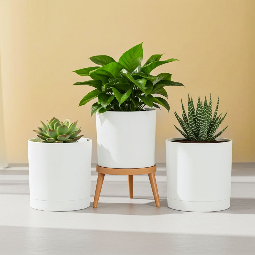 6-Inch Plastic Planter Pots – Cylindrical Stylish, Durable & Plant-Friendly with Drainage & Seamless Saucers