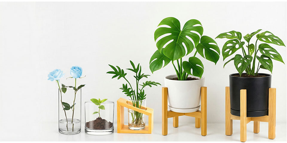 Hydroponic Plant Cultivation Station – Pure Wooden Stand with Transparent Acrylic Vase – 6in Vase | Plants Not Included